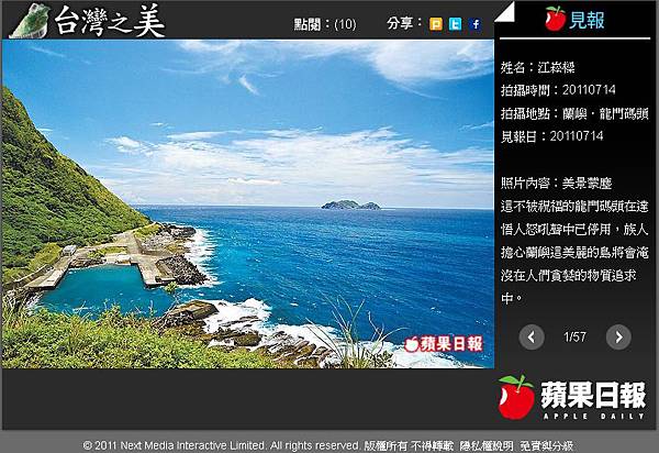 感謝蘋果日報的賞識,也讓更多讀者分享這臺灣的美景