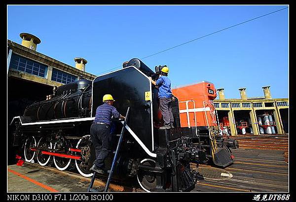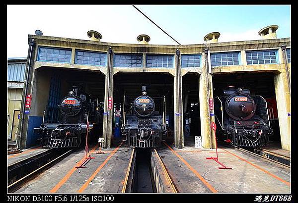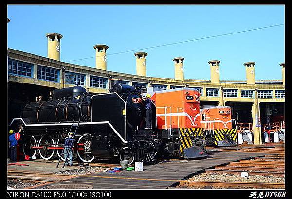 ▼彰化車庫內的三輛蒸氣車頭,這次遇見了整修後的DT668