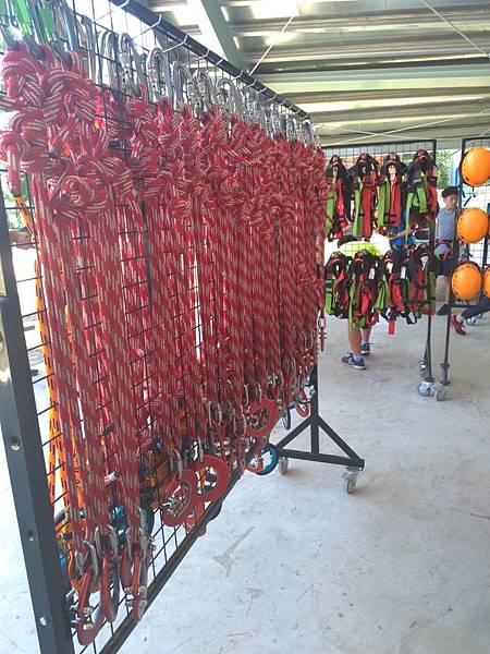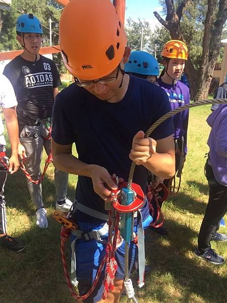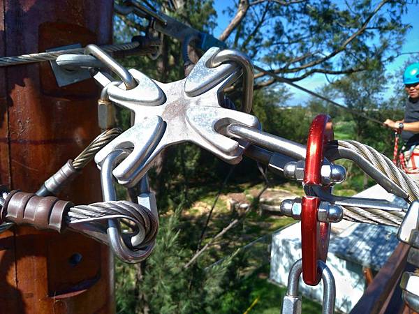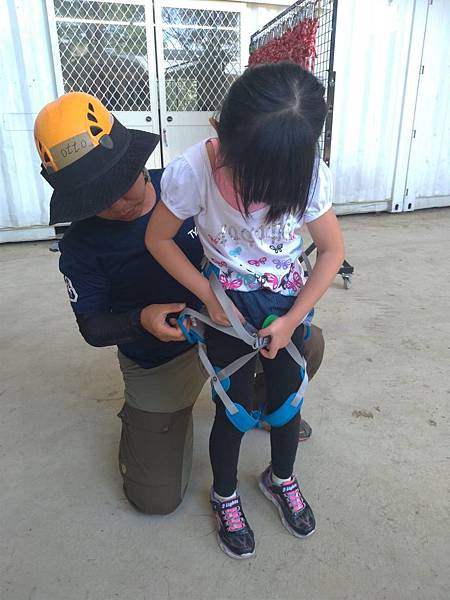 ▼著裝後,教練會先指導這C型環的用法,以及關卡與關卡間轉換的扣環