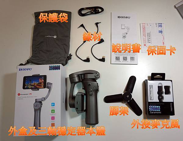 我買的這組合是三軸穩定器 + 腳架 + 外接麥克風
