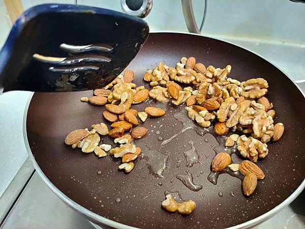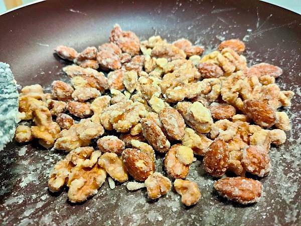 試驗過後,發現還是要生腰果去炸過,吃起來口感較香
