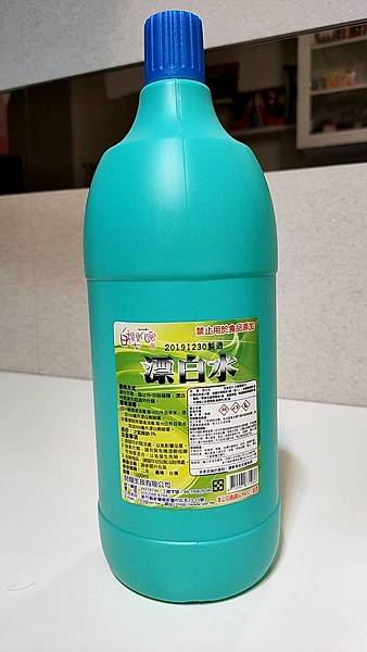 取家中漂白水(含氯)20ml,接著加入2公升的水中